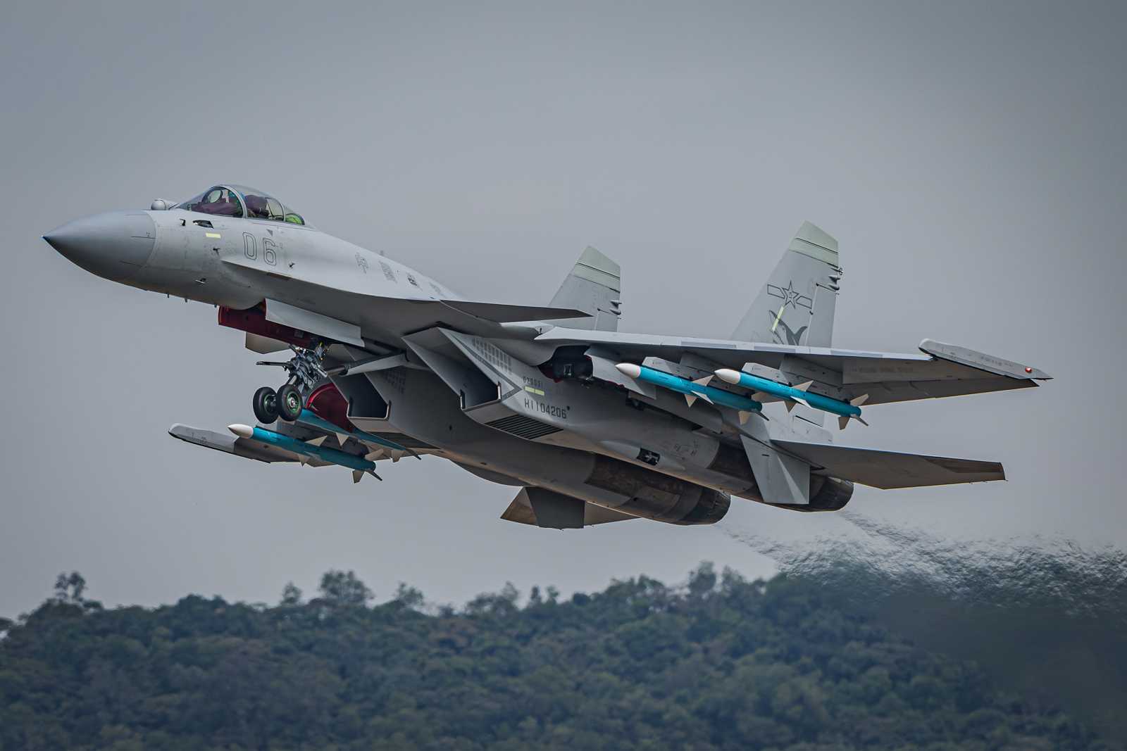 A J-15 fighter jet conducts adaptive training for the upcoming 15th China International Aviation and Aerospace Exhibition, or Airshow China 2024, on November 9, 2024 in Zhuhai, Guangdong Province of China. (Reuters, Chen Xiao/VCG)
